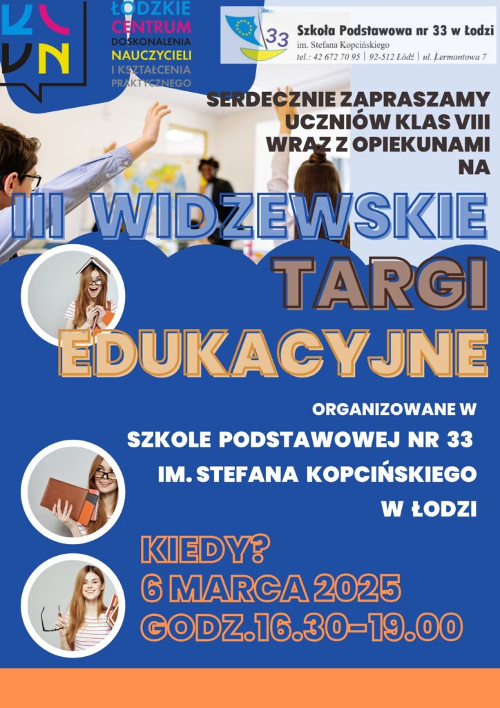 Serdecznie zapraszamy Państwa wraz z przyszłymi pierwszoklasistami na pełen niespodzianek Dzień Otwarty Szkoły, który odbędzie się 2 kwietnia 2025 roku w godzinach 17.00 – 19.00 w Szkole Podstawowej nr 33 przy ul. Lermontowa 7 w Łodzi.