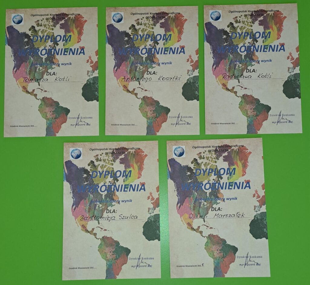 Z przyjemnością informujemy, że następujący uczniowie uzyskali wyróżnienie za wynik bardzo dobry w Ogólnopolskim Konkursie Geograficznym Geo – Planeta:
